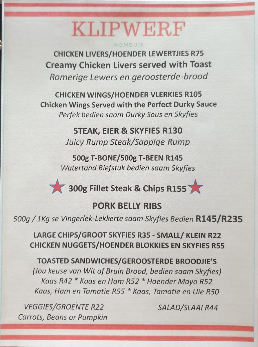 Whether you're enjoying a relaxed Friday night or celebrating a special occasion, Klipwerf Kroeg promises great service, a lively atmosphere, and exceptional food, making it a local favorite you won't want to miss!